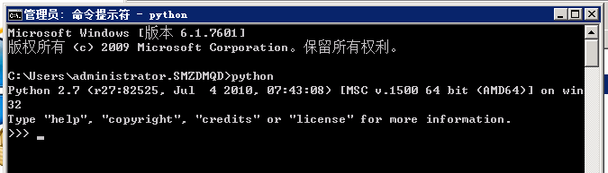 3、在 cmd 命令提示行下输入 python,进行python环境