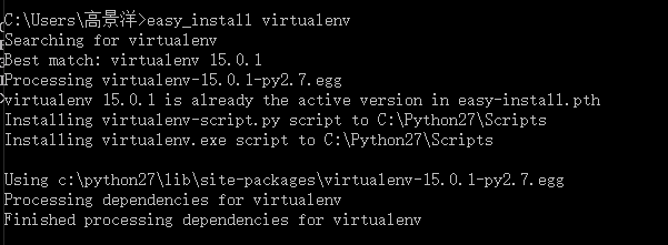 8、输入easy_install virtualenv,安装virtualenv ,它主要用来做解释器隔离