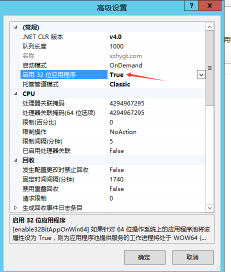7、有时候需要设置应用池支持32位才可以生效,请注意,设置方法