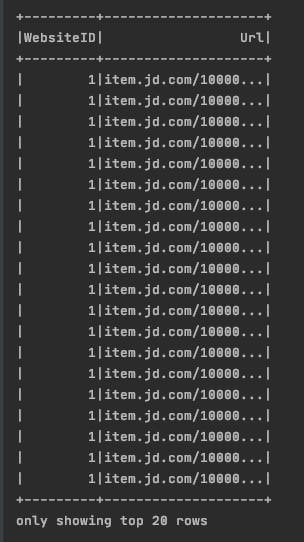 df.select('WebsiteID','Url').show()