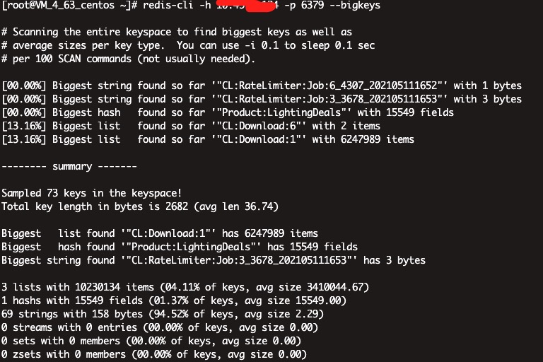 大key查询命令: redis-cli -h 10.10.10.10 -p 6379 --bigkeys