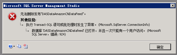 对数据库文件进行了磁盘迁移,在删除原数据库时出现以下错误(sql错误:924)