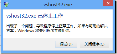 在Win 10 + Vs 2015 环境下调试程序,出现 “vshost32.exe 已停止工作”